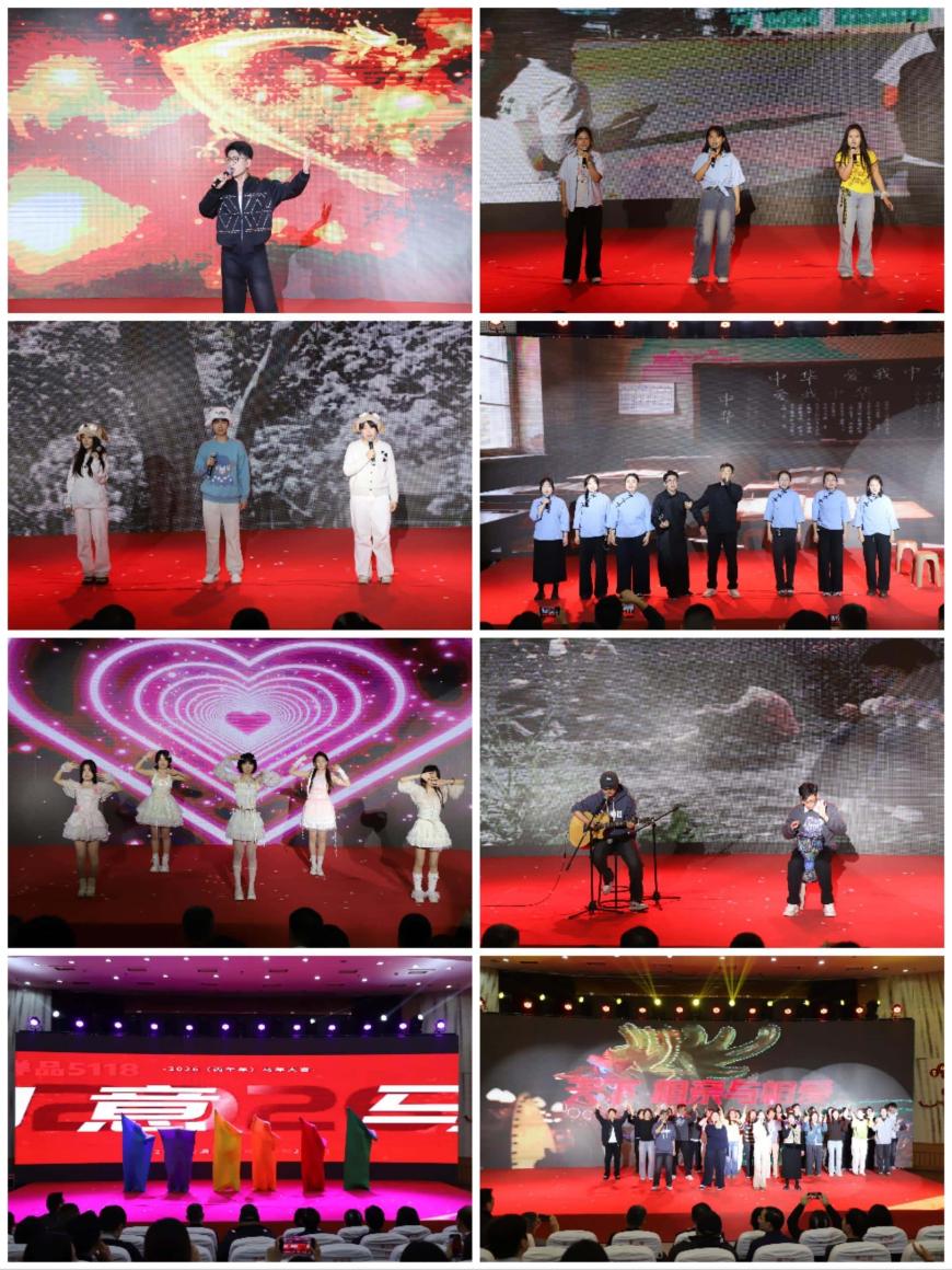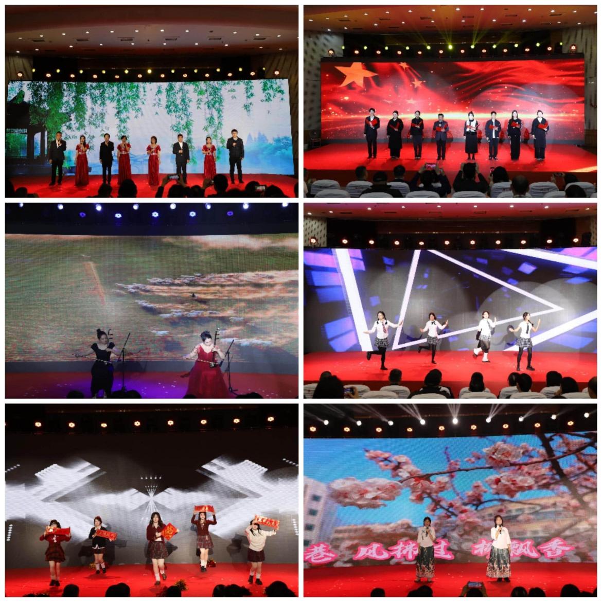 文艺表演环节精彩纷呈、亮点纷呈,充分展现了学院师生的多才多艺与青春活力。郭佳辉、张诗凡等同学带来的开场舞活力四射,用灵动的舞姿迅速点燃现场气氛,赢得阵阵掌声;教师代表合唱的《春风十万里》婉转温情,歌声里满含对生活的热爱与对未来的憧憬;于颀老师独唱的《龙》豪迈大气,唱出了昂扬向上的精神气魄;姜丁菡同学与其本科阶段老师王馨悦的二胡协奏《赛马》节奏铿锵、气势磅礴,精湛的技艺让现场观众深深沉醉;吉他弹唱《程艾影》温柔细腻,项子文、许晓彤等同学演绎的歌曲串烧青春灵动,尽显少年意气;舞蹈串烧动感十足,朗诵《盛世中国 可爱的中国》情感真挚、催人奋进,深情抒发了对祖国的无限热爱与自豪;情景剧《最后一堂课》以生动的演绎传递出师生间的深厚情谊,引发全场共鸣。