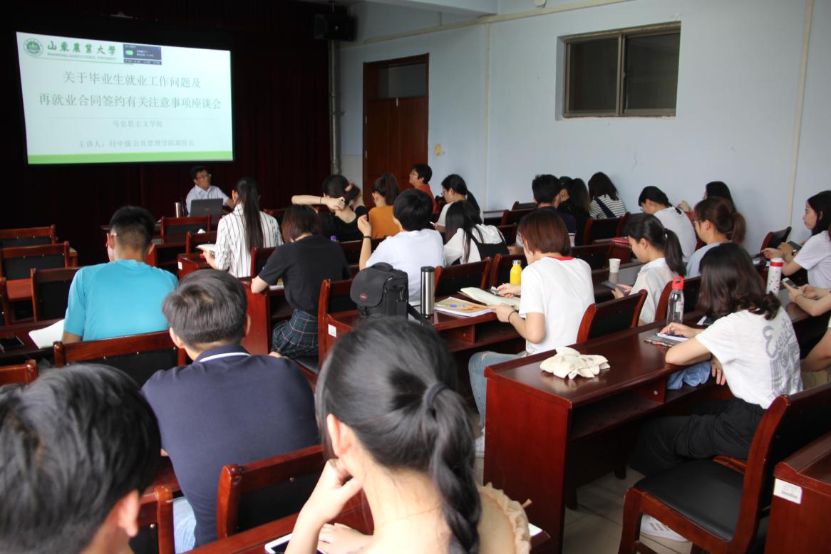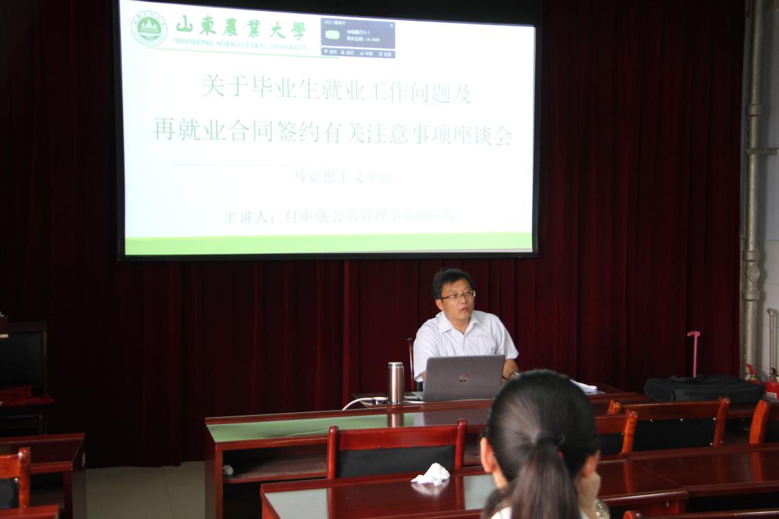 为适应当前严峻的就业形势,指导和帮助毕业生更好的就业、择业,同时提升研究生的维权意识和安全意识,6月17日下午,我校公共管理学院副院长付中强老师受邀来我院与即将毕业的研究生就“关于毕业生就业工作问题及再就业合同签约有关注意事项”这一主题展开座谈。辅导员苏琳老师主持,全体毕业生参加,研一研二同学旁听。