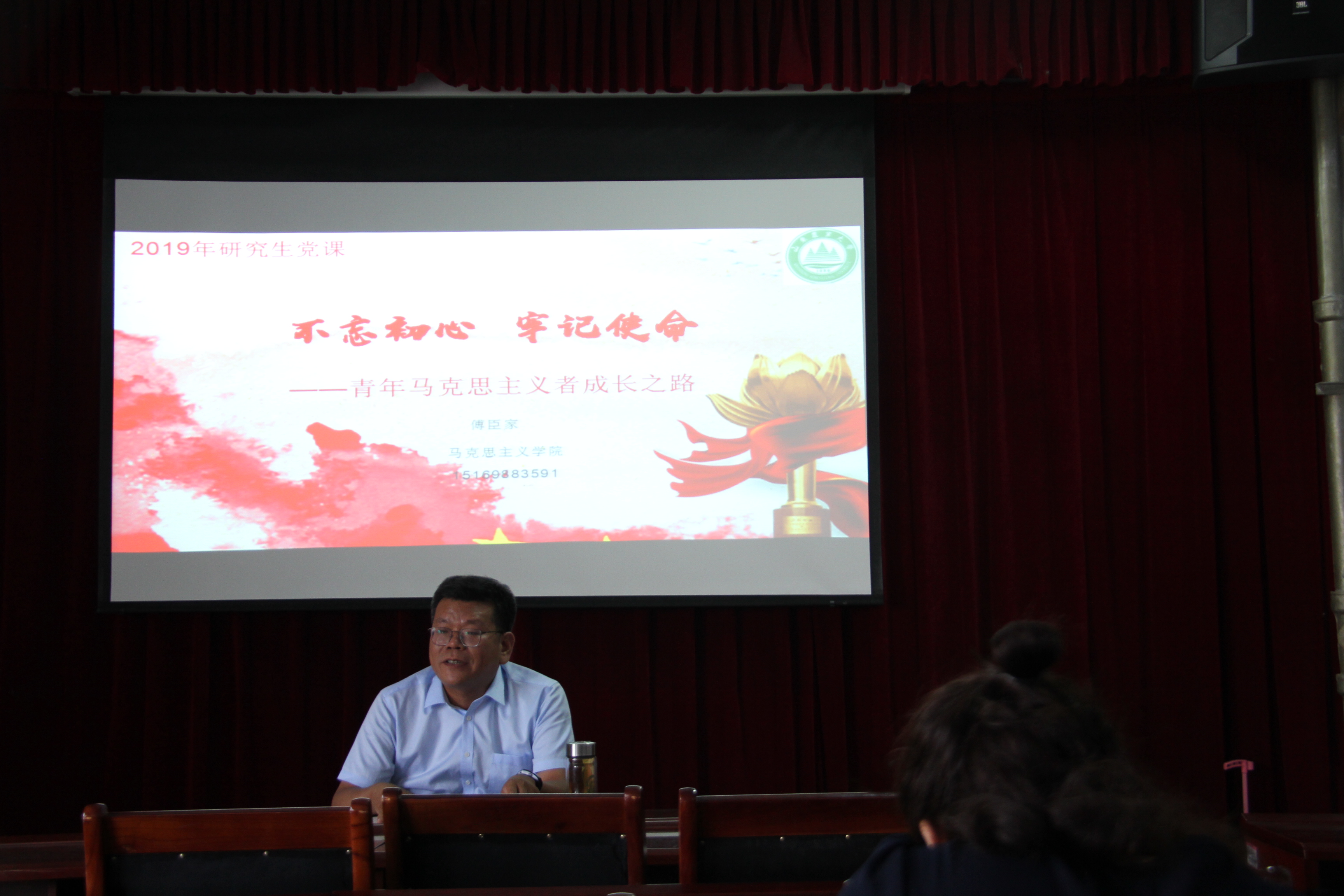 为保证我院2019届硕士毕业生以高标准的政治素养走出校门,走上新的岗位和学校,6月18日上午,我院在8号楼508报告厅举行了“最后一次党课”,学院党委书记傅臣家给2019届全体硕士毕业生上了主题为“不忘初心,牢记使命——青年马克思主义者的成长之路”的党课,研究生辅导员苏琳主持。