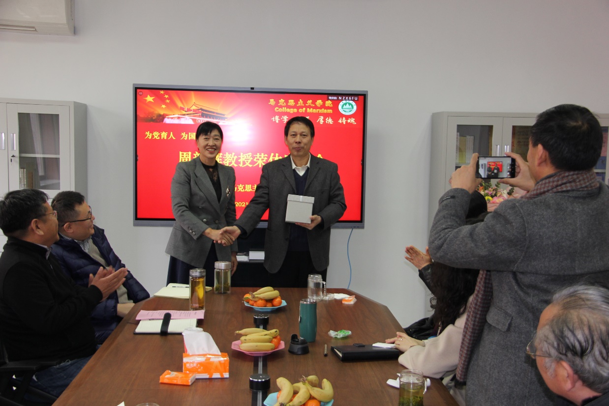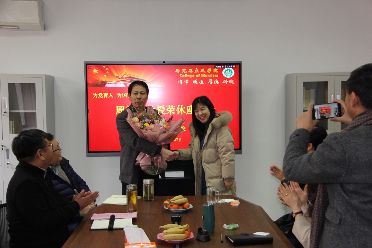 座谈会首先播放了概论部制作的视频,回顾周新辉教授入职农大以来,在工作、生活诸方面的卓越风采。林美卿院长向周老师赠送精心准备的纪念品,房红丽老师向周老师献上美丽的鲜花,对周院长几十年春秋染芳华、桃李满天下的辛勤耕耘、默默奉献表示由衷的感谢,并送上美好的祝福。