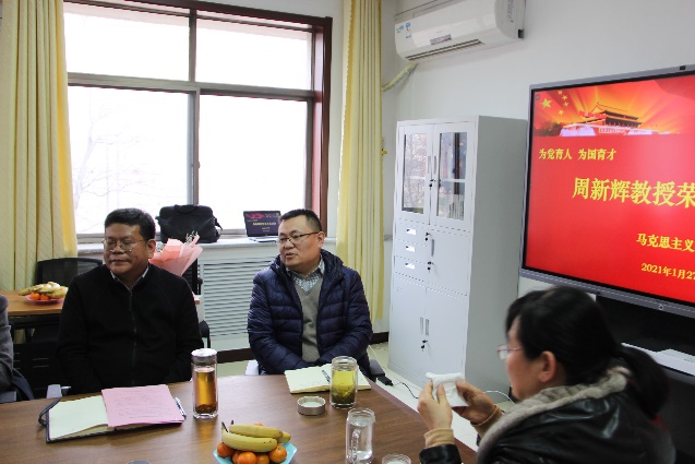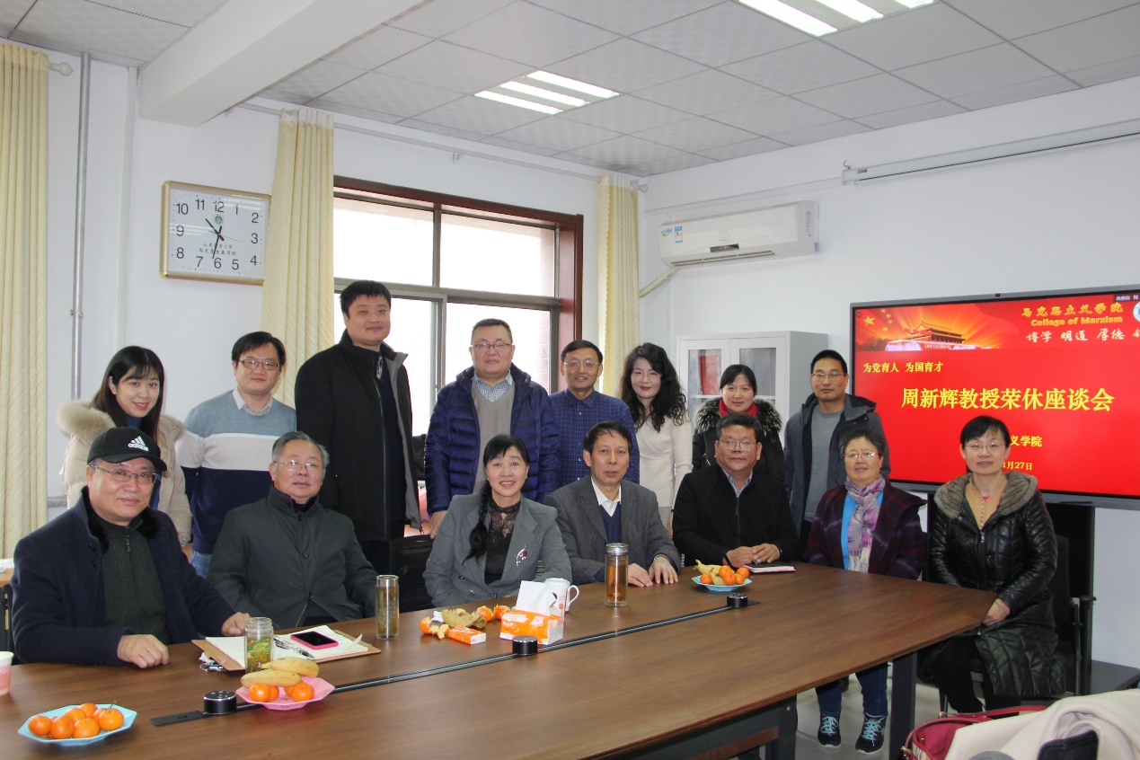 (宋其洪 汪晓彤)2021年1月27日上午,马克思主义学院举行周新辉教授荣休座谈会,学院全体在家的领导、各教研部主任、各支部书记、教授委员会主任、教师代表和办公室人员参加会议。座谈会由学院党委书记、工会主席傅臣家同志主持。