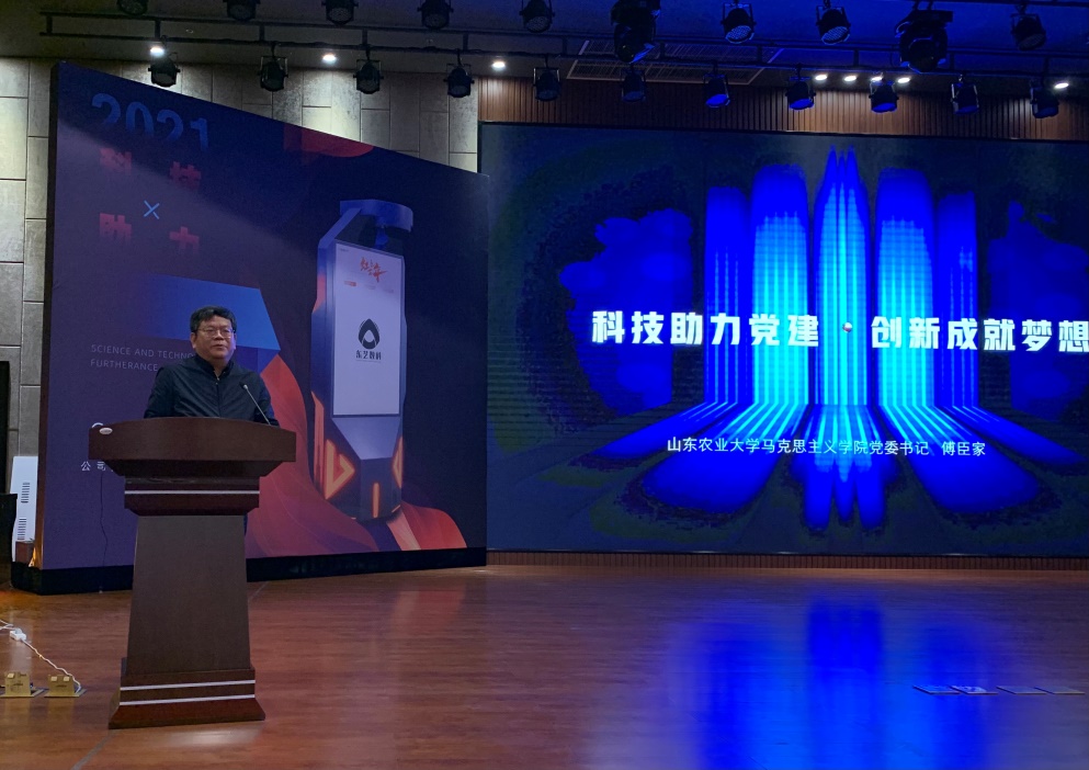 (汪晓彤 崔平萍)4月11日,以“科技助力党建,创新成就梦想”为主题的东艺数科 VR 智慧屏产品发布会在泰安市国家高创中心召开。马克思主义学院党委书记傅臣家出席发布会。