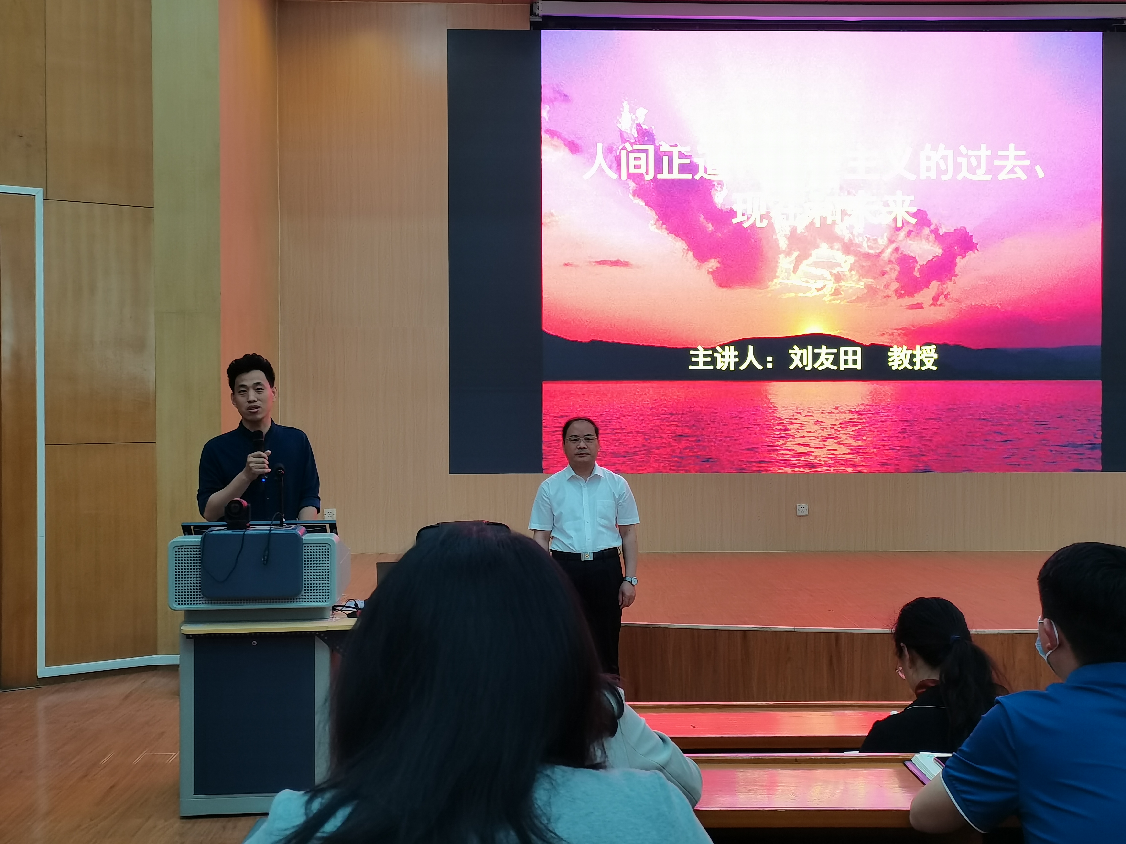 (刘成成 王共蒙 张庆伟供稿)5月14日上午,2021年度“辅导员党史学习教育专题培训班”第二场报告会在5号教学楼N124国交学院报告厅成功举办。马克思主义学院刘友田教授作了题为“社会主义五百年:社会主义的过去、现在和未来”的专题报告。会议由马克思主义学院党委委员、原理教研部党支部书记张庆伟同志主持,各学院副书记、全体专兼职辅导员和马克思主义学院部分师生参加了本次培训。