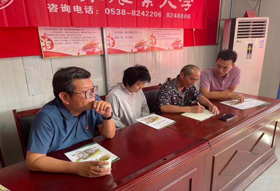 (刘成成 张庆伟供稿)7月3日,马克思主义学院党委书记傅臣家带队来到学院党建共建示范基地——肥城市王瓜店街道新胜村,举办“‘我为群众办实事’主题党日活动暨山东农业大学招生咨询会”。