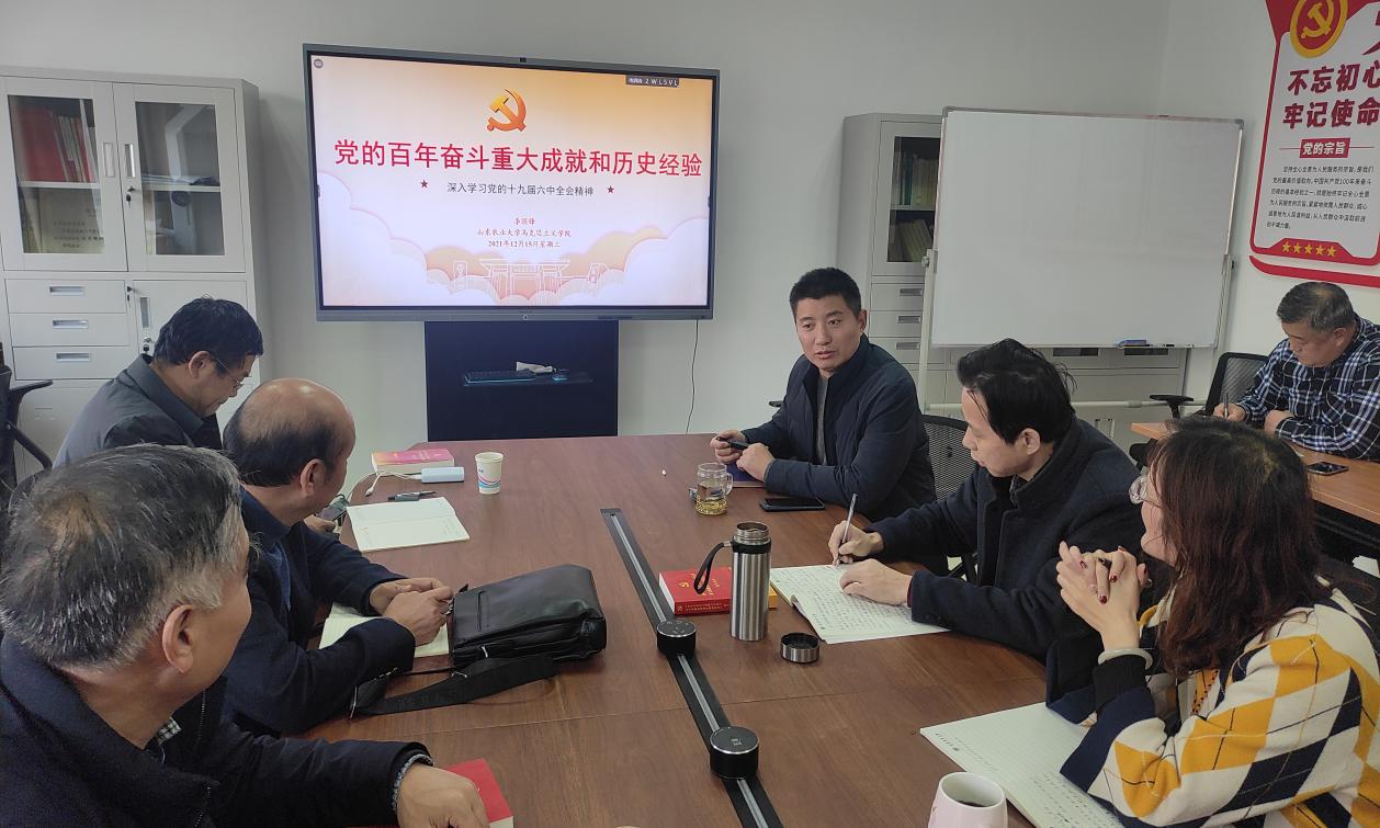 12月15日,形势与政策教研部在8号楼308开展党的十九届六中全会精神集中学习。副院长李国锋为教研部全体成员作学习辅导报告,并就课程和教研部建设进行调研。