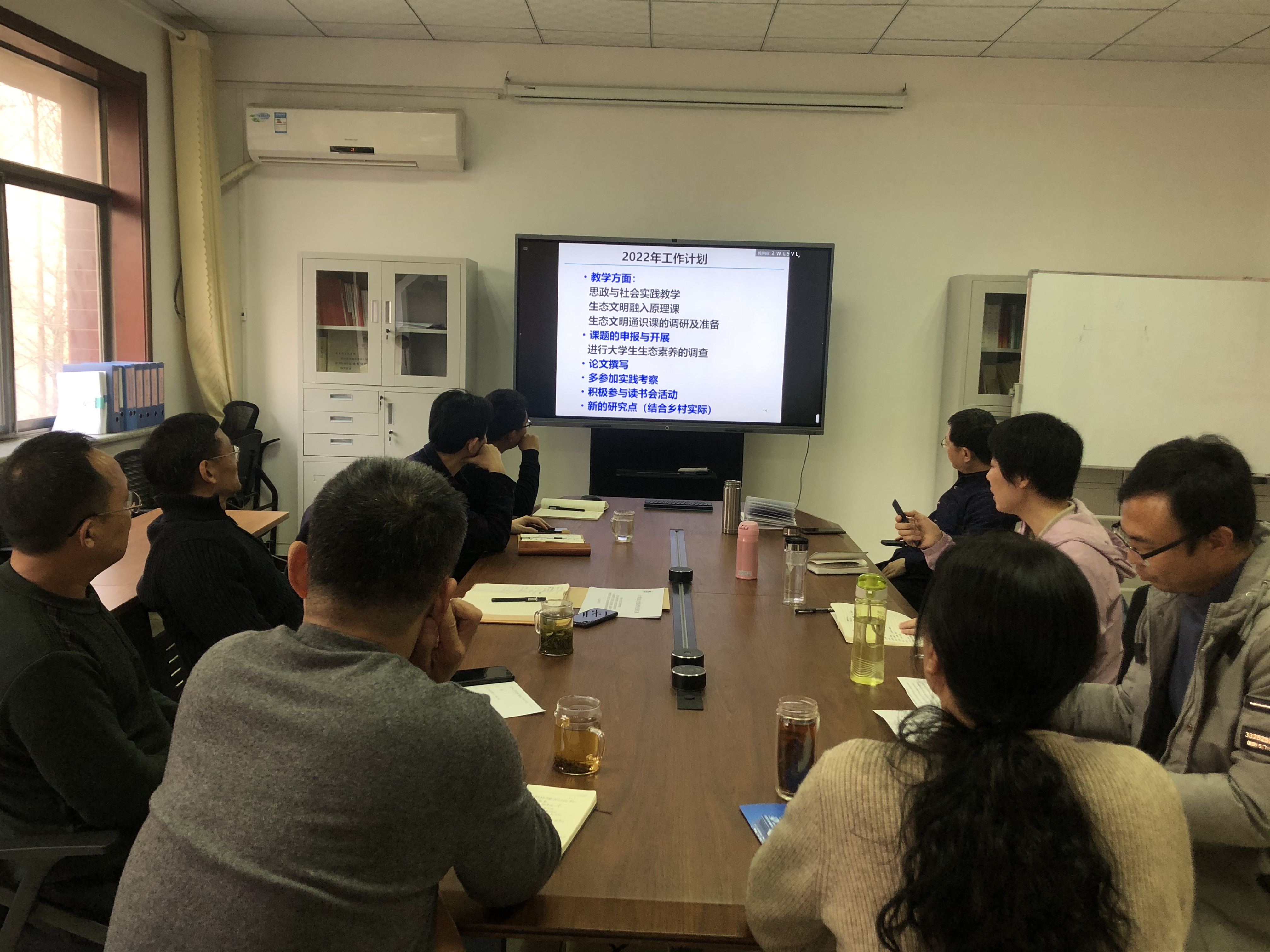 (蔡威熙)1月17日下午,教育部示范优秀教学科研团队建设项目“马克思主义关于人与自然关系思想的教学研究”成员、泰安市“农业生态文明”社科基地研究成员、马克思主义学院“马克思主义人与自然关系思想”教学科研创新团队成员,在岱宗校区马克思主义学院党建活动室开展集体交流活动。