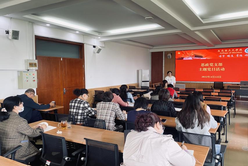 (王君钰 供稿)4月12日,基础教研部党支部在8号楼519开展主题党日活动暨教学研讨会,进一步加强高校疫情防控管理,落实线下教学管理办法,提升思政课教师教学能力与水平。活动由党支部副书记、教研部主任任凤琴主持,教研部全体教师参加。