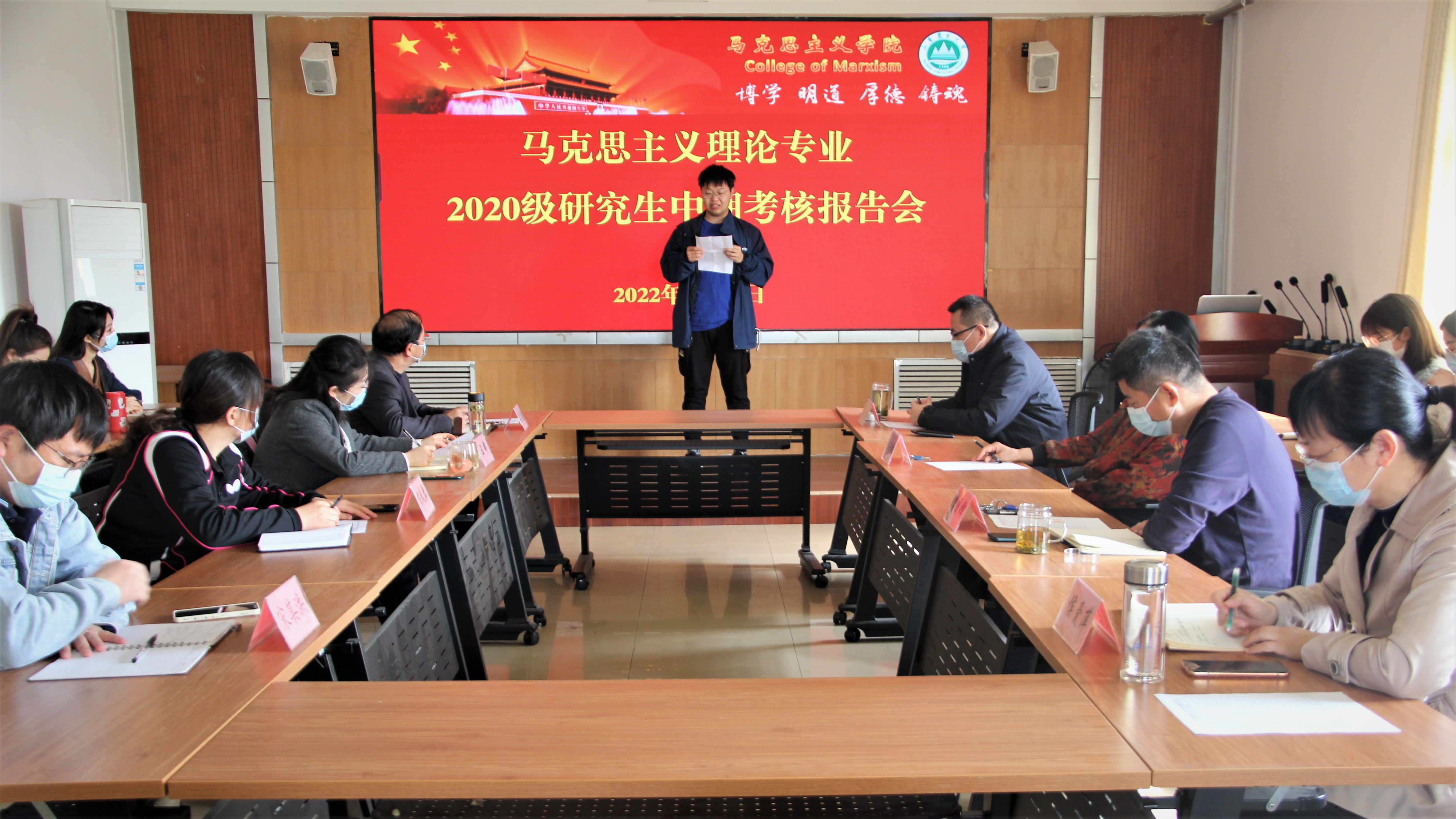 4月14日上午,马克思主义学院2020级马克思主义理论专业研究生中期考核报告会在8号楼519学术报告厅举行。此次报告会由马克思主义学院副院长李波主持,林美卿教授等马院导师组七名成员组成评审组现场参加,其他年级研究生线上旁听。