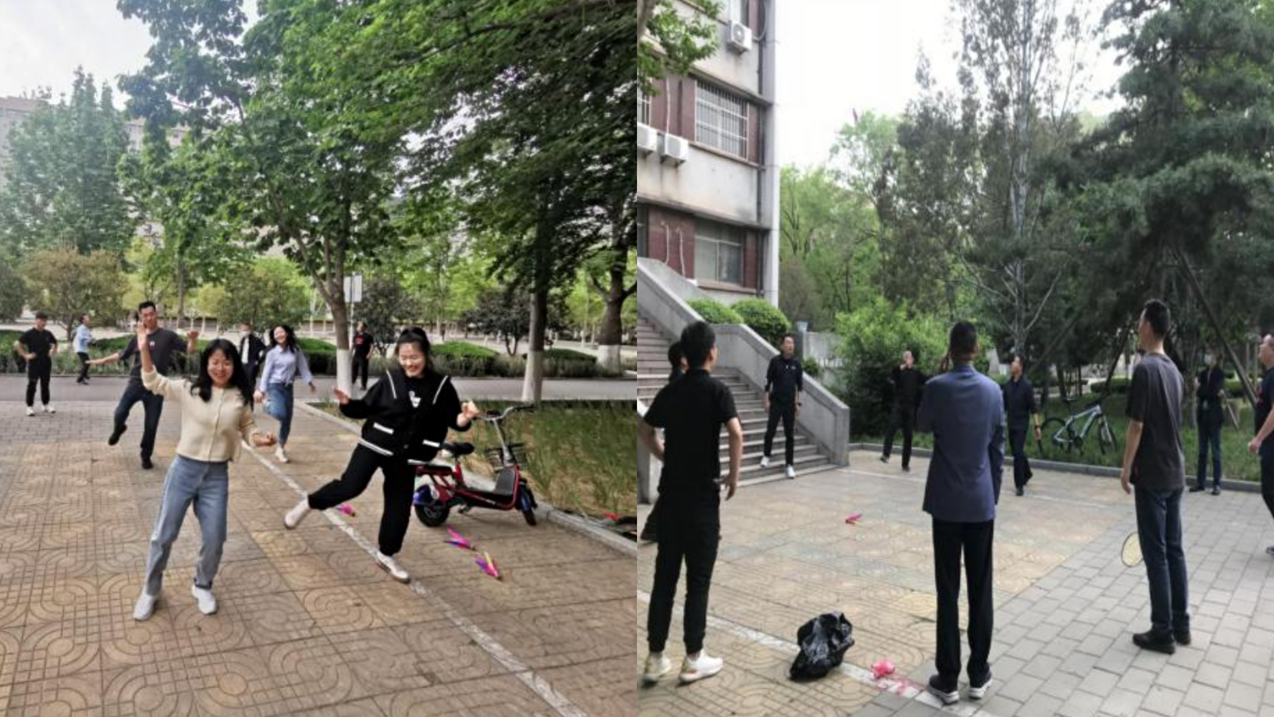 最后,教研部全体教师在8号楼前空地上举办了微型健身活动,迎接“五一”国际劳动节的到来。