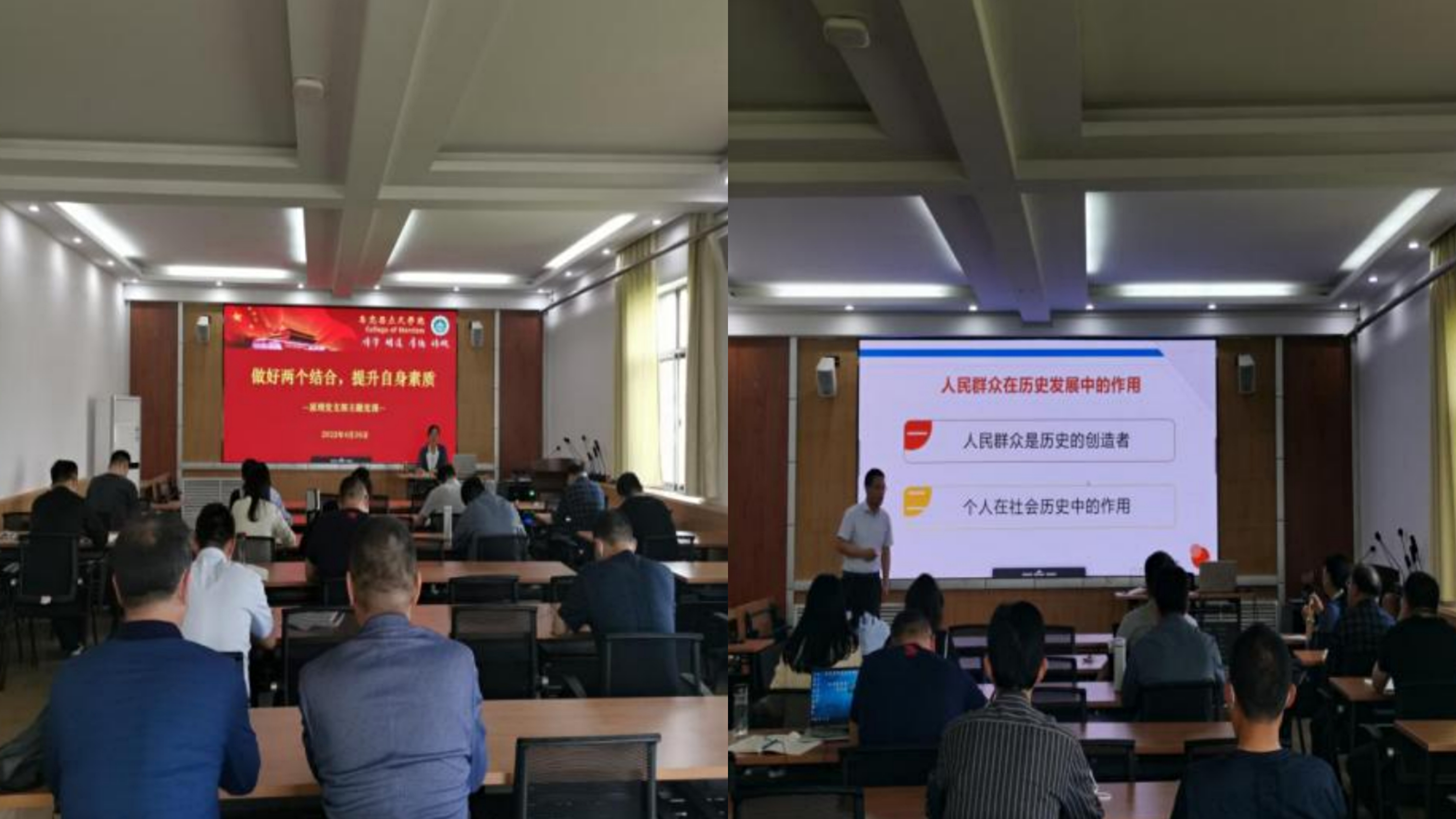 首先,林美卿以“做好两个结合,提升自身素质”为题,给原理教研部全体教师上了一堂精彩的专题党课,从立足于挖掘世界历史意义这一重要维度,深入浅出地展示了习近平新时代中国特色社会主义思想在打造社会主义发展中国样板、现代化发展中国模式、社会治理中国经验等诸多方面对于21世纪人类社会发展的重要贡献。