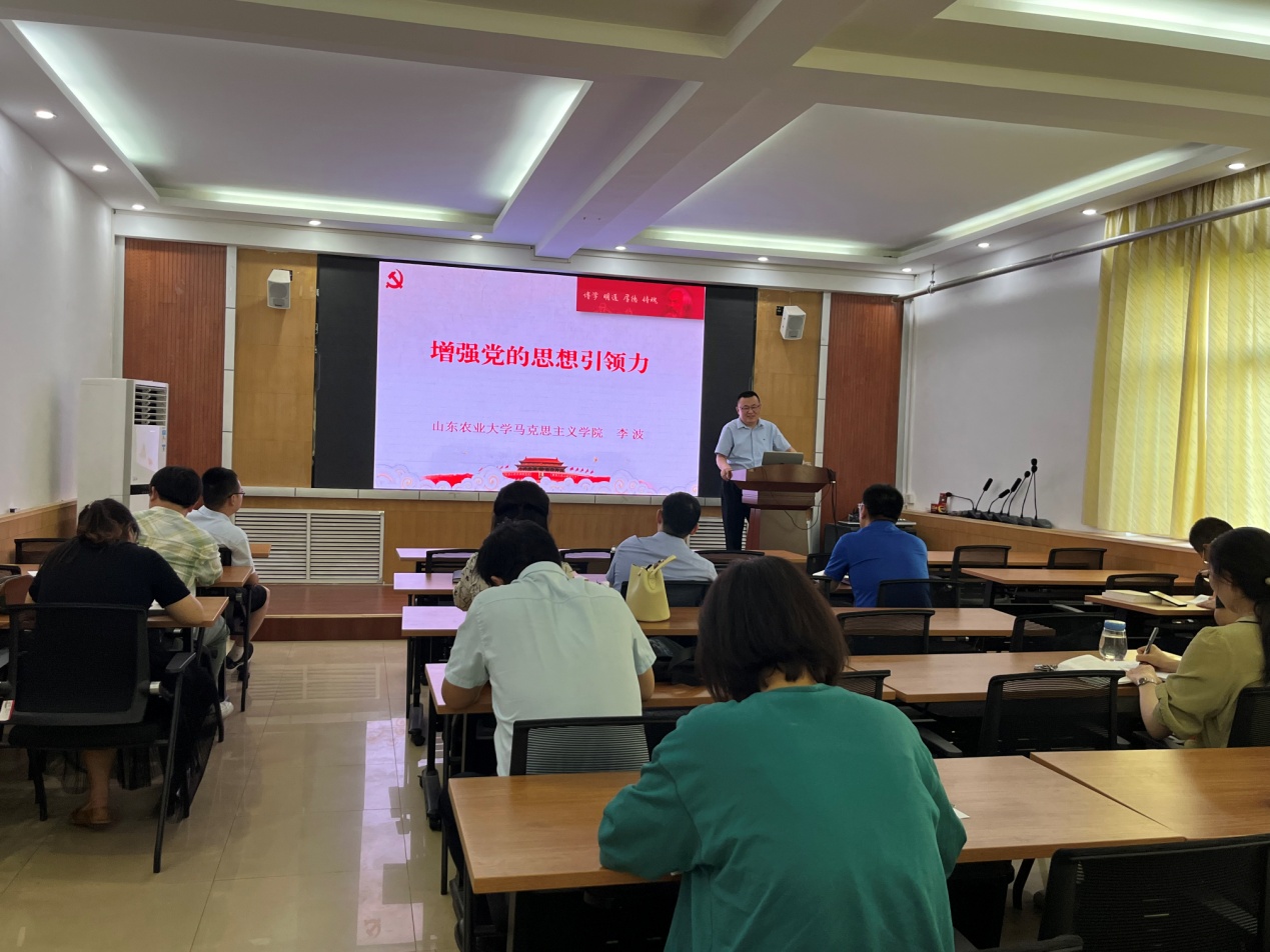 李波在党课中强调,党的十八大以来,以习近平同志为核心的党中央把党的思想引领力建设摆在重要位置,不断凝心聚力,回答好新时代兴党强党的时代答卷。他指出,为进一步增强党的思想引领力,必须高度重视意识形态工作,牢牢掌握党对意识形态的领导权;应对复杂严峻的意识形态斗争形势,要不断巩固马克思主义在意识形态领域的指导地位,增强党的思想引领力,更好地引领正确的发展方向、凝聚正确的思想共识。