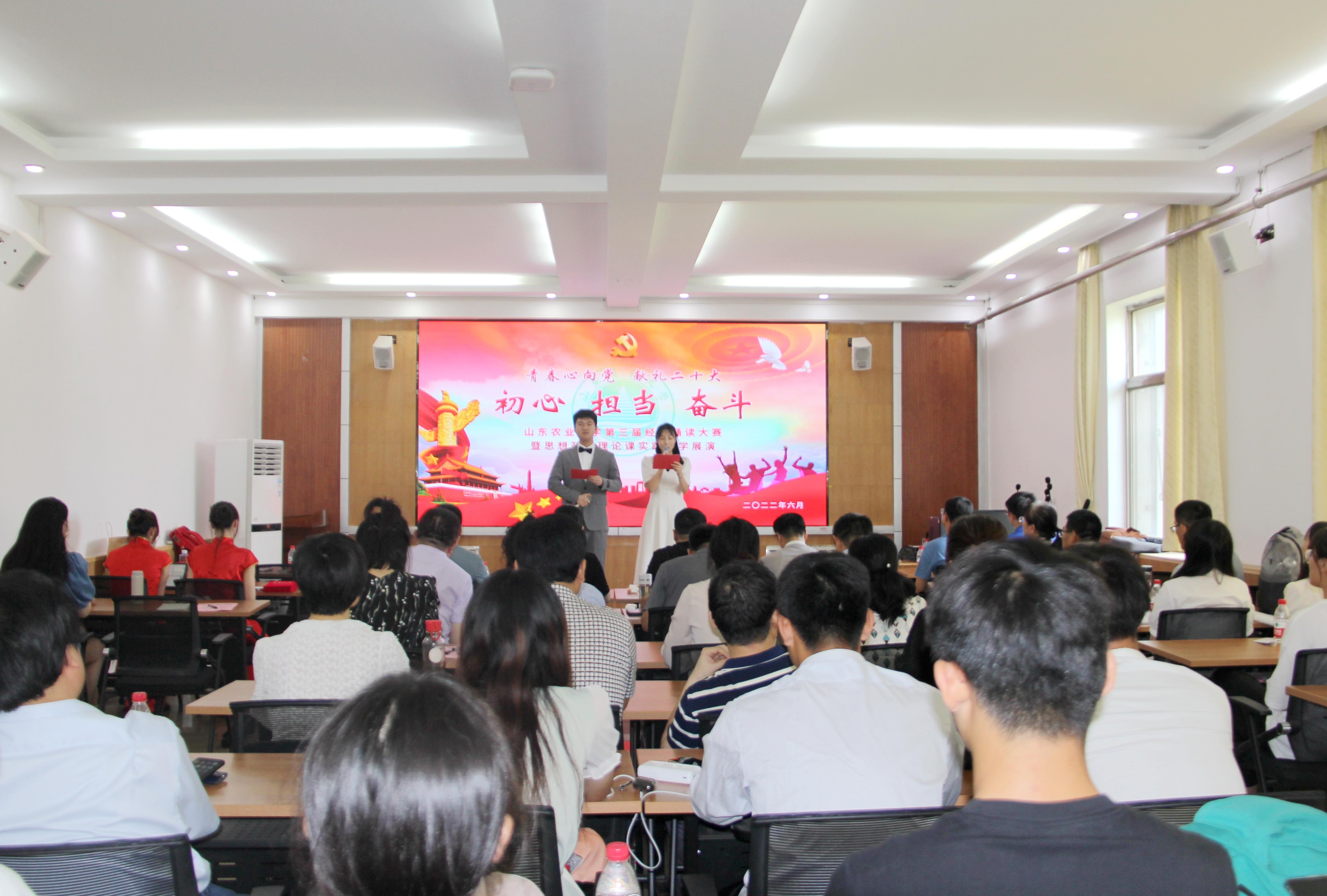 (刘慧 高芳 供稿)6月19日,山东农业大学第三届经典诵读大赛暨思想政治理论课实践教学展演在8号楼519举行,山东农业大学报社社长、党委宣传部主持日常工作的副部长张铁成,校团委书记孙丽,教务处处长谢胜利,学工处处长王群,马克思主义学院领导班子以及学院相关教师出席大赛并担任评委。