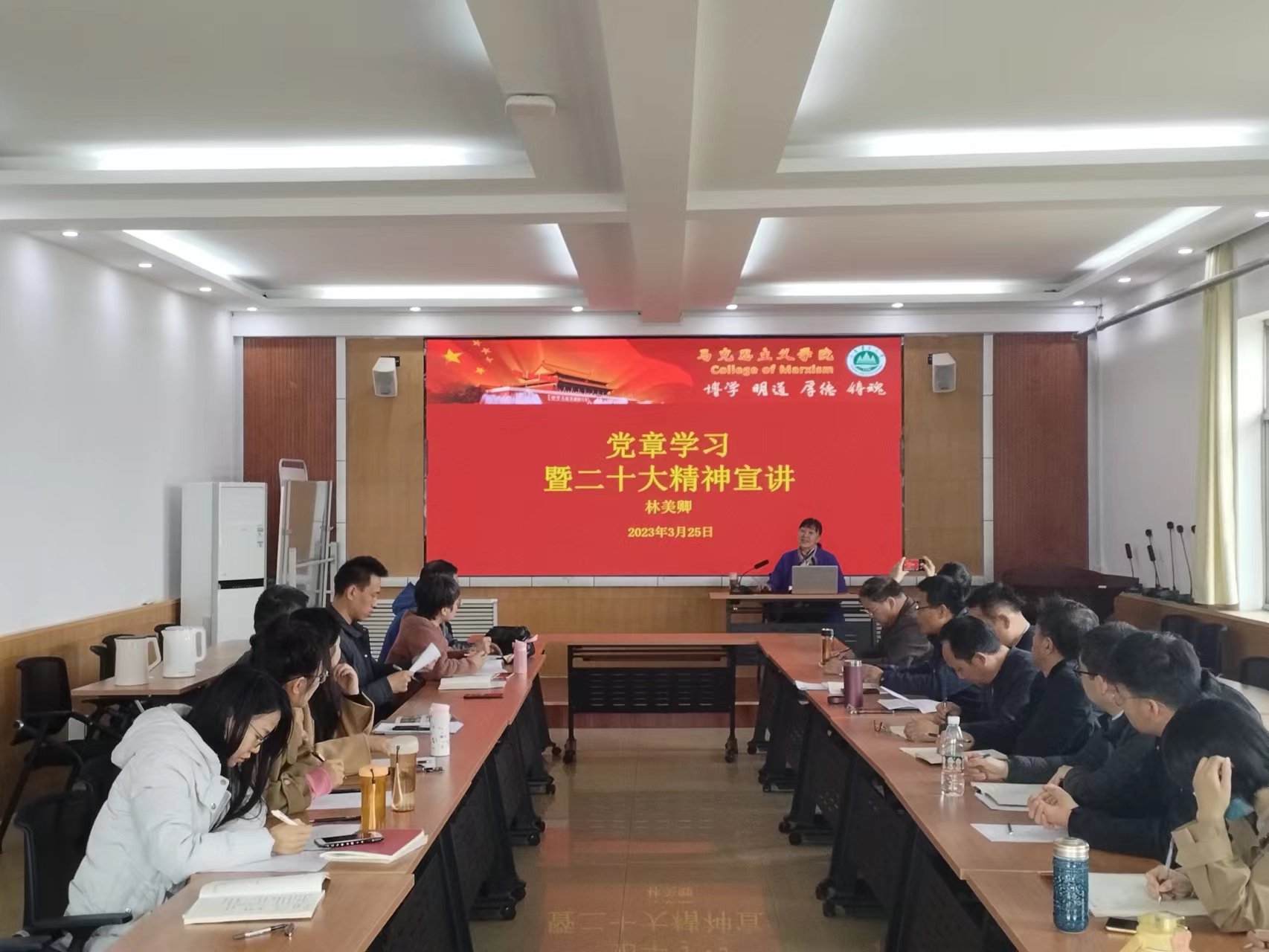 林美卿指出,学习党章和党的二十大精神要成为常态化工作,要时时学、经常学、深入学。“六个必须坚持”是习近平新时代中国特色社会主义思想世界观和方法论的高度概括和总结,继承和发展了辩证唯物主义和历史唯物主义,相互贯通,内涵丰富,对新时代中国特色社会主义事业具有重大的指导价值和方法论意义。所有教师要深入学习贯彻“六个必须坚持”,提高理论阐释能力;将教学科研工作和党建工作深度融合,积极参与调研、考察等社会实践活动,增强对中国特色社会主义伟大事业、伟大实践的认识。