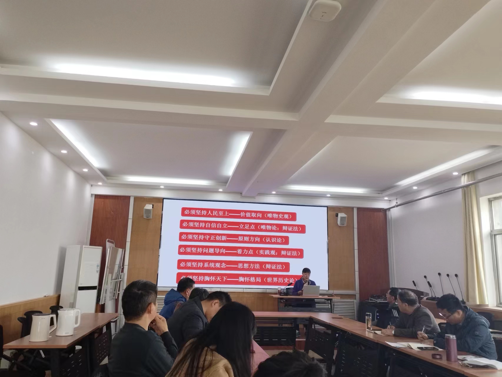 (王照明 张庆伟)2023年3月25日下午,院长林美卿以党的二十大报告中提出的“六个必须坚持”为主题,为原理教研部讲授专题党课,宣讲党的二十大精神。