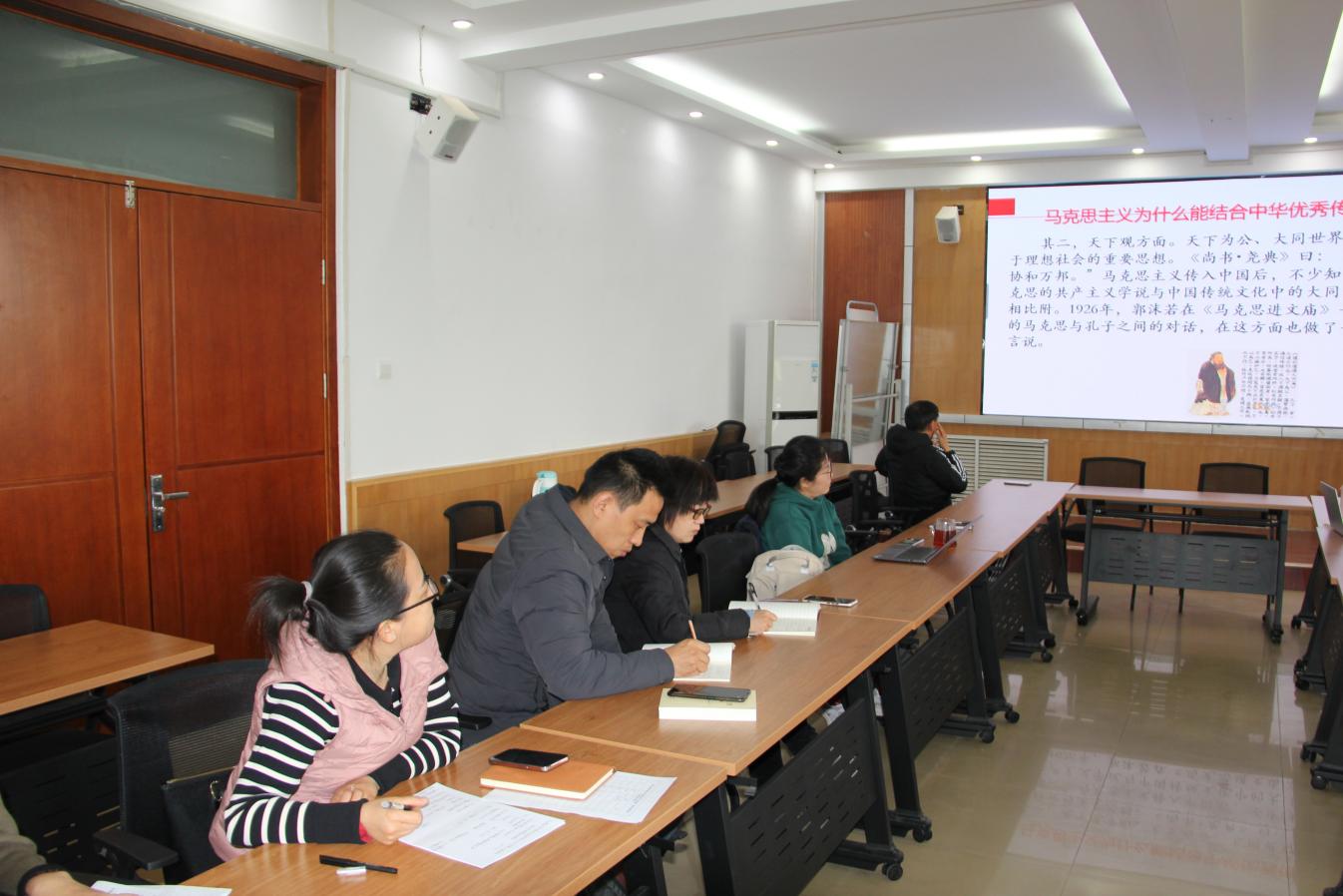 报告结束后,宣讲团成员及新思想教研部老师们展开了热烈的讨论,从宣讲方式、宣讲对象、方式方法、时间要求等方面提出了意见和建议,建议主题宣讲要精准把握着力点,多方位激发宣讲对象的学习兴趣,对中华优秀传统文化的“两创”的讲述要结合中国共产党百年党史、放在中华民族伟大复兴进程中加以深入阐释,要整合好、解读好习近平总书记关于中国文化发展道路的重要论述。最后,马克思主义学院党委书记、宣讲团成员傅臣家作了总结发言,强调一定要提高政治站位,牢牢把握习近平总书记提出的“学思想、强党性、重实践、建新功”的总要求,全面把握习近平新时代中国特色社会主义思想的科学体系,努力掌握这一思想的世界观、方法论和贯穿其中的立场观点方法,做到学思用贯通、知信行统一,积极构建多层次、多形式的宣讲格局,大力增强主题教育宣讲的影响力、感召力和感染力,提升针对性和实效性,推动主题教育走深走实。