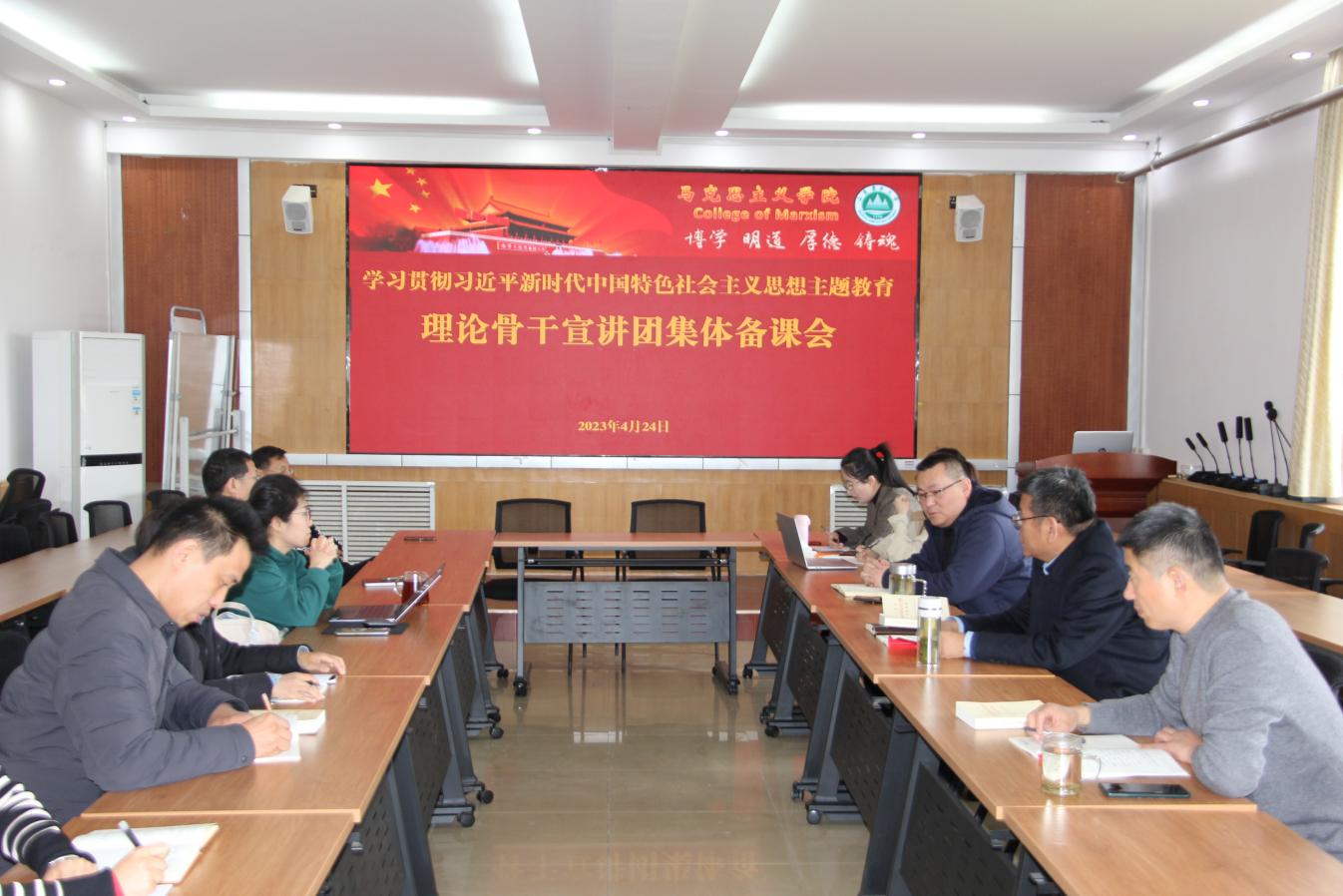 (马婷婷 汪晓彤)2023年4月24日下午,山东农业大学学习贯彻习近平新时代中国特色社会主义思想主题教育宣讲团在8号楼519举行理论骨干宣讲团集体备课会,备课会由宣讲团副团长、马克思主义学院副院长李波主持,学院党委书记傅臣家参加活动并讲话,宣讲团成员及习近平新时代中国特色社会主义思想概论教研部部分教师参加了备课会。