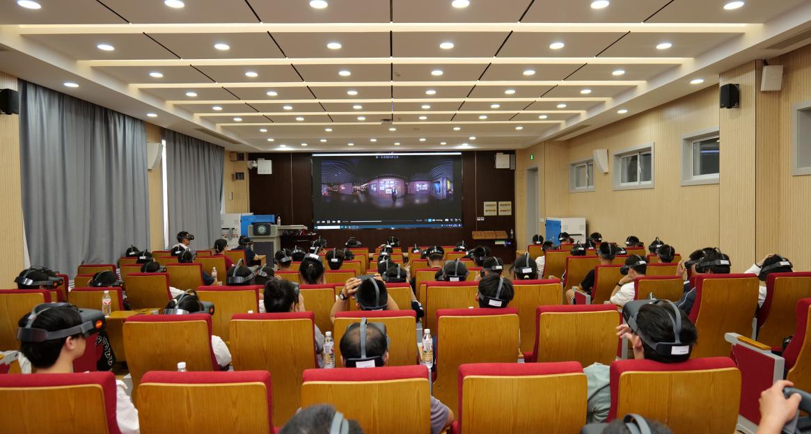 在实践环节中,同学们走进了“初心课堂”,参观中国百年乡村变迁史展览。在志愿者生动细致的讲解下,同学们从“列强东来、落日余晖;红星升起、光耀四方;改天换地、栉风沐雨;风正扬帆、驶向春天;追梦有为、大路向前”等五个篇章观看了丰富的历史资料与生动的案例展示,深入了解了中国农业生产、农村建设和农民生活所经历的历史性巨变,深入学习了近现代中国农业、农村和农民的整体风貌以及取得的伟大成就,深刻感悟到中国共产党在百年乡村变迁中发挥的卓越领导作用。在思政VR虚拟仿真实验室体验环节,同学们在李军民老师的引导下,戴上VR眼镜,沉浸式地观看了《中国共产党第一次全国代表大会会址纪念馆》和《中国人民解放军海军博物馆-核潜艇》两部短片。通过虚拟现实技术,同学们仿佛置身于中共一大会议现场,亲身体验了中国共产党第一次全国代表大会的历史性时刻,细致浏览了会址纪念馆的珍贵展览内容;同时,他们还身临其境地探索了核潜艇的发展历程和内部构造。这种沉浸式的体验让同学们深刻感受到了伟大建党精神的磅礴力量以及我国国防科技的飞速进步,进一步激发了他们的爱国情怀与民族自豪感。