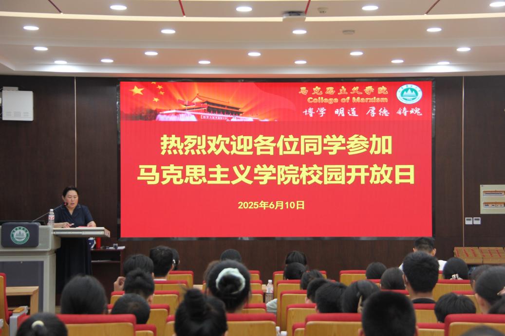 近日,马克思主义学院“传承红色基因 共筑青春理想”2025年校园开放日活动在泮河校区成功举办。来自泰安二中、泰山中学等3所中学的68名高中生和部分学生家长走进校园,以体验研学的方式感受百年山农深厚底蕴。同学们怀着对大学的憧憬与向往走进校园,开启了一场沉浸式的体验研学之旅。通过参与丰富多彩的活动,学生们深深地感受到大学校园浓厚的学术氛围,增进了他们对百年山农的了解和认识。学院党委副书记李平、马克思主义理论专业主任张庆伟、学院思政VR虚拟仿真实验室主任李军民、学院团委全体辅导员老师和学生志愿者共同参加。