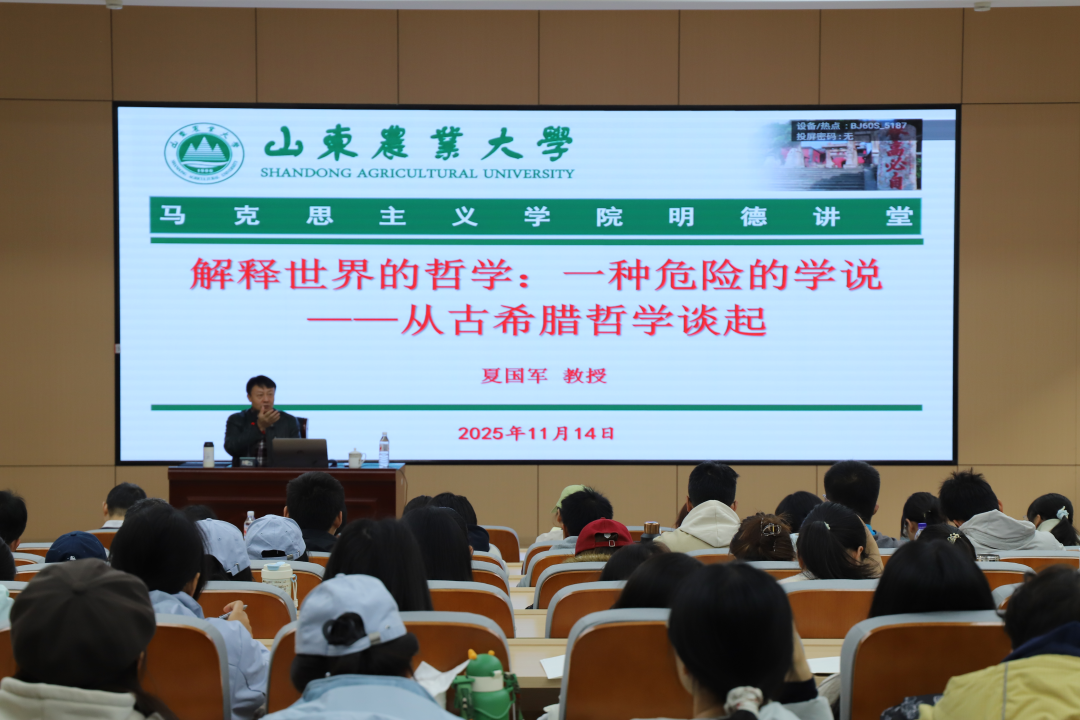 11月14日上午,上海大学夏国军教授做客马克思主义学院明德讲堂,作题为《解释世界的哲学:一种危险的学说——从古希腊哲学谈起》的学术报告。学院副院长李国锋主持报告会,马克思主义理论专业的本科生、2024级硕士研究生参会。