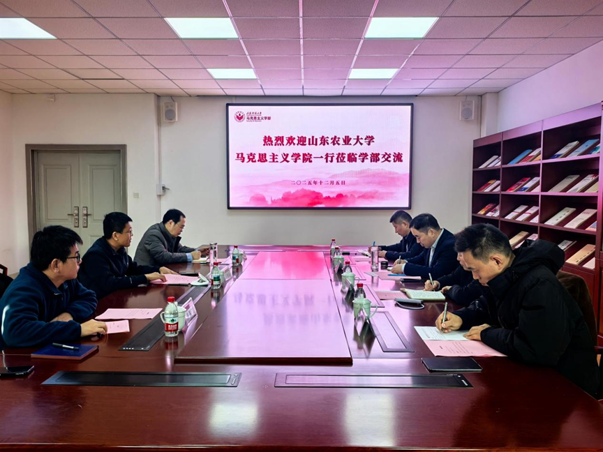 在山东大学,鞠晗介绍了山东大学马克思主义学院党建工作和人才队伍建设情况,王海宁介绍了专业建设和本硕博学生一体化管理情况。张方爱表示,山东大学作为全国首批全国重点马克思主义学院,学科专业建设一直走在全国的前列,诸多做法具有很强的借鉴意义,为学院“十五五”发展规划的制定、学科专业建设、学生管理等提供了新的思路。双方围绕如何进一步优化马克思主义理论专业培养方案、加强教师队伍建设、创新实践育人模式等进行了深入讨论。