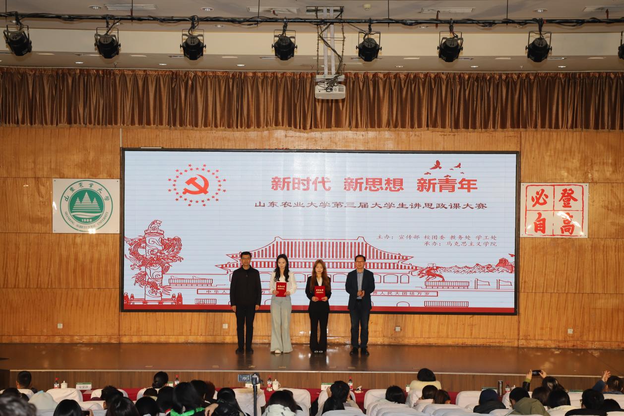 (刘 铭)2025年12月12日晚,由学校党委宣传部、校团委、教务处、学工处主办,马克思主义学院承办的山东农业大学第三届大学生讲思政课大赛决赛在南校区图信楼报告厅举行。学工委书记齐宪磊、党委宣传部副部长李涛、校团委副书记尹昌美、校教务处副处长冯竟竟、马克思主义学院院长李波、副院长安宝洋、教授委员会主任侯爱萍等出席本次活动。
