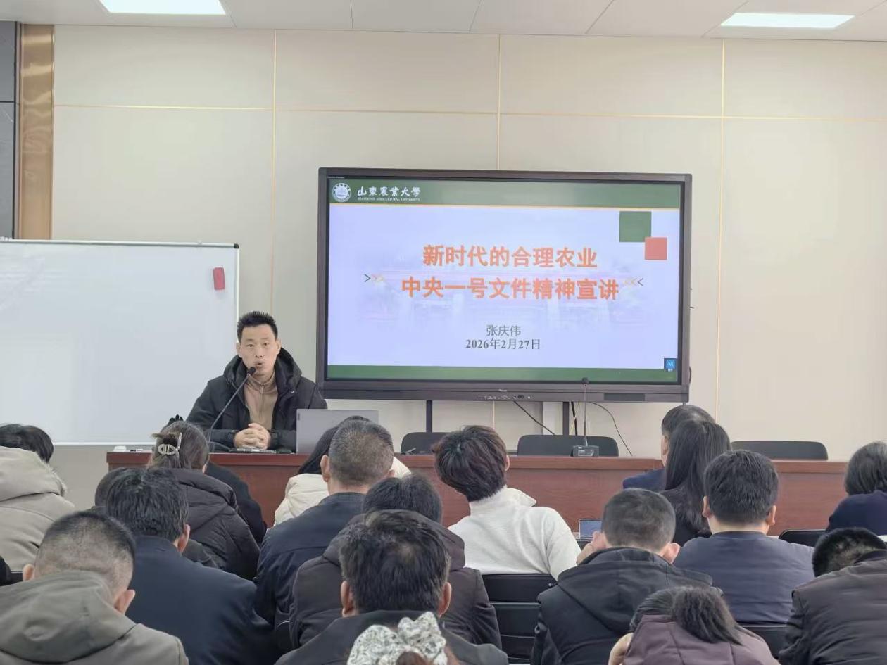 原理教研部主任张庆伟围绕2026年中央一号文件精神开展专题解读,宣讲紧扣农业生产、农民生计、农村发展、加快建设农业强国等重点内容,紧密结合夏张镇发展实际与典型案例,用接地气、听得懂、能落实的语言,把政策要点讲清讲透,为当地基层干部群众精准把握政策导向、全面推进乡村振兴提供了有力理论指引与实践路径。把思政课开在田间地头,推进了思政小课堂与社会大课堂的有机结合,为学生科技专员精准把握党的创新理论、有针对性开展驿站建设工作奠定了坚实的理论基础。